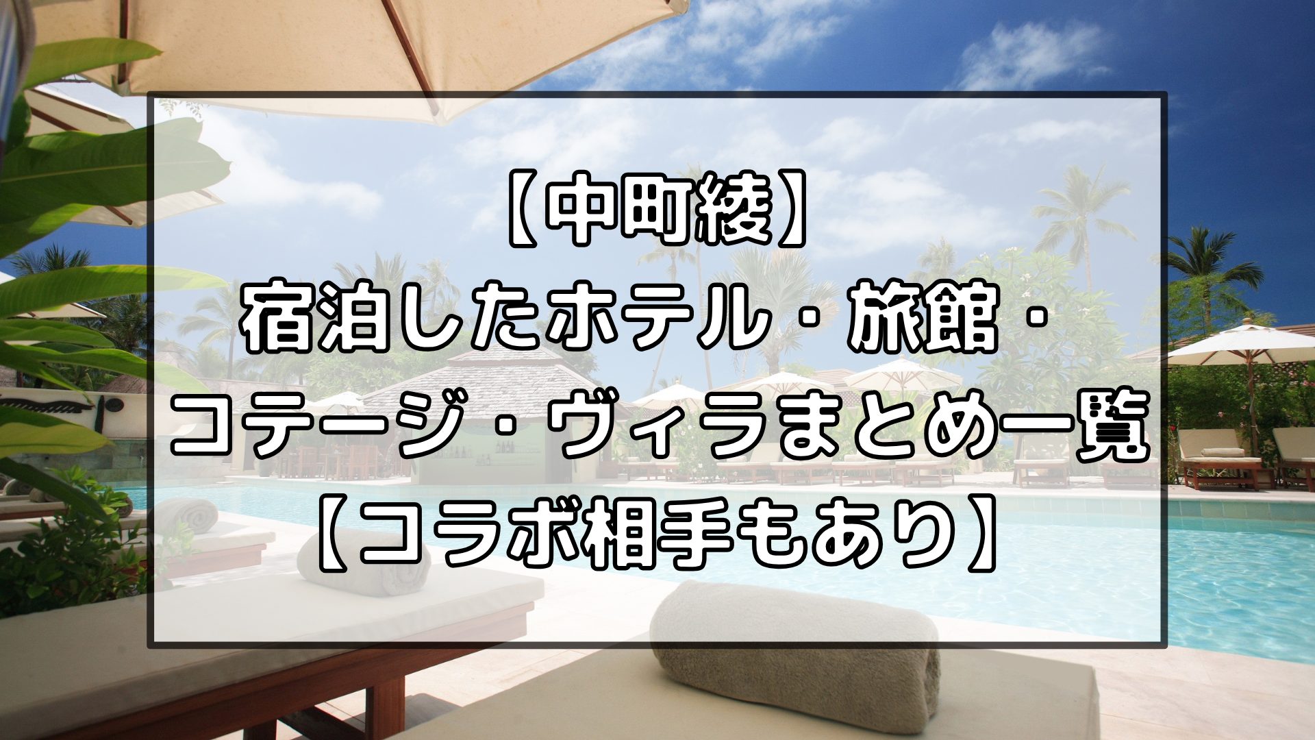 今回は【中町綾】宿泊したホテル・旅館・コテージ・ヴィラまとめ一覧【コラボ相手あり】についてご紹介していきました。
