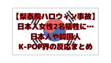 韓国 【梨泰院ハロウィン事故】日本人女性2名犠牲に…日本人や韓国人、K-POP界の反応まとめ お読みいただきありがとうございます。この記事おすすめの方梨泰院ハロウィン事故について知りたい方悲しく痛ましい梨泰院ハロウィン事故について詳しく知りたい…ブログ主Cak2022年10月29日に起きた梨泰院ハロウィンでの事故についてですね。ご紹... 2022.10.30 韓国